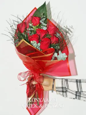 9 Kırmızı Gül Lüks Buketi