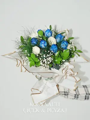 Beyaz ve Mavi Gül Buketi