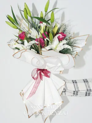 Pembe Gül ve Beyaz Zambak Buketi