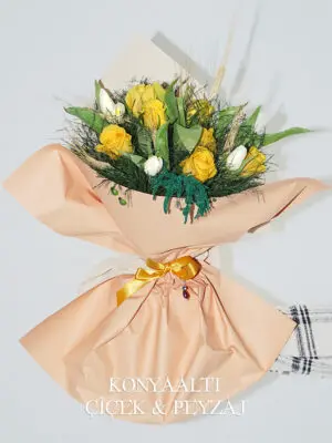 Sarı Gül ve Beyaz Lale Buketi
