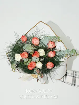 Turuncu ve Beyaz Gül Buketi